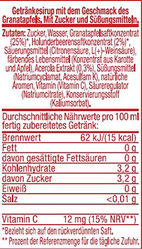 - Mit einem Mischungsverhältnis von 1:24 – ergibt jede Flasche 9 Liter Fertiggetränk